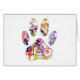 A colourful abstract dog paw print paint splatter style. Original digital painting.