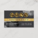 An all grey cover with paint splatter is accentuated by a gold striped layer near the card's centre. Here lies the business name "HANDYMAN SERVICE" which you can change. Just above this is a gold handyman tools icon logo you can use. ; The tools can represent some of the services that you offer e.g. the drill-measuring tape can represent home remodeling, construction etc. Near the base is your prestigious name, job title and the contact details at the opposite end.
