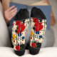 Bring bold creativity to your style with these paint splatter socks, featuring dynamic splashes of red, blue, yellow, and black on a cream background. The geometric grid adds structure to the energetic design, creating a striking contrast. Perfect for art lovers and trendsetters, these socks make a unique and artistic statement for any outfit.
