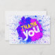 Say Thank You with this artsy, bold and bright grunge-styled thank you note featuring a blue paint splatter and the words "Thank you" written in a bold distressed font.