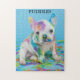 PAINT SPLATTERED PUPPY PUZZLE WITH PERSONALIZED NAME.