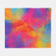 Beautiful and fun paint splatters fleece blanket in yellow, pink, blue, and purple.