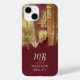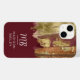 Whimsical Abstract Gold Red and Bronze Paint Strokes iPhone 14 Case with a white custom monogram template. For an added personal touch include your first and last name to the template. Give a thoughtful personalised iPhone case as a gift for Mother’s Day, birthday, graduation, etc. Personalised Monogram Initial Letter iPhone Cover with geometric elements.