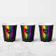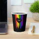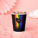 Charming lgbt wedding paper cups with rainbow pride flag drawn with messy strokes and adorned with a black heart against a black background. Personalise with your initials.