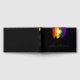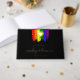Charming lgbtq wedding guest book with rainbow pride flag drawn with messy strokes and adorned with a gold foil heart against a black background. Gay wedding guest book in black with a heart and rainbow brush strokes and custom gold foil text. Lesbian wedding guestbook with a heart on rainbow coloured brushstrokes.