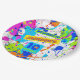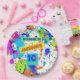 Bright and colourful personalised paintball birthday paper plates, change all the text yourself when you order.