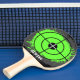 Paintball splash table tennis ping pong paddle with custom name. Personalised name or monogram ping pong paddle for table tennis. Sports accessories game gift idea for men women and kids. Custom neon green background colour. Cool design for adults and children etc. Sporty novelty present for childrens Birthday party. Also nice for college dorm . Crosshairs target and paint splatter print.