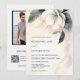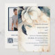 This elegant minimal wedding invitation features AI created painted 3 dimensional white flower with a shadow on a tan background. With your photo and a scannable qr code for your wedding website on the backside.