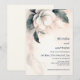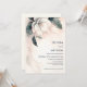 This elegant minimal wedding invitation features 3D faux relief white flower and greenery with a shadow on a blush pink background. First names only text template
