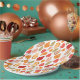 A repeating pattern of autumn leaves in shades of orange, coral, and dusty green. The leaves are all different shapes and sizes. The white background can be changed to whatever colour you like using the customise tool!