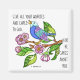 Pretty decorative magnet of painted bird and flowers, with scripture verse from 1 Peter 5:7