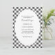 Your custom wedding details appear at the center in black lettering against a oval shaped frame with my painted black and white checkerboard pattern in the background. The painted black squares give this a soft and pretty look. The reverse side is a plain white.