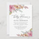 Elegant yet organic, our Painted Blooms baby shower invitation features watercolor flowers in muted shades of peach, blush pink and sage green at the corners, framing your baby shower details in classic off-black lettering. Cards reverse to subtle sage green tone-on-tone stripes. A beautiful choice for spring or summer baby showers in garden or outdoor settings for baby girls on the way.