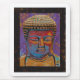 Mixed media portrait of the Buddha done by Sheryl Karas. The original painting was done mostly in acrylics on canvas in red, gold, black and blue.