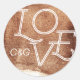 Modern chic simple typographic LOVE design and couple's monogram on copper colour painted abstract background, great for modern wedding and anniversary parties.