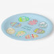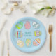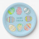 Painted Easter Eggs on Light Blue Paper Plates. Text ready to be personalised for Easter, holidays, Birthday and more.