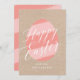 This easter greeting card features a pastel easter egg with tone on tone pink stripes on a kraft background with white calligraphy Happy Easter overlay. The coordinating backer features the same tone on tone painted stripe pattern. This design was inspired by the natural dipping of dyed easter eggs and the subtle layering that happens when you dip the eggs over and over.