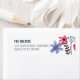 A chic and fresh wedding invitation featuring whimsical hand-painted pink & purple flowers on a navy blue background accented with gold script modern calligraphy. Original design by Kitty Pie Prints.