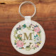 Painted Floral Personalized Monogram Canvas Bag Key Ring
