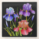 Painted flowers, colourful iris on black glass coaster