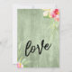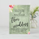 Painted Flowers Green Wood Casual Wedding Script Invitation