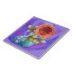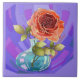A brightly floral tile of painted flowers; full pink rose bloom in a vase of water, on a back splash of purple. Perfect accessory to add a splash of colour to your kitchen (or any other room in the house!) Use as a trivet, or a piece of art.