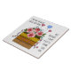 A bright floral tile of painted flowers (pink roses) in a wooden crate, with quote about prayerful thanks.
