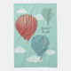 This kitchen towel features my painted illustrations of hot air balloons with realistic style depictions of balloons in red, blue and green along with white clouds set against a light blue sky. This towel is ready to be customised with your own personalised message.