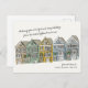 Hand-drawn holiday travel postcard featuring an illustration of the Painted Ladies, the decorated Victorian homes in Alamo Square, San Francisco. Original art and design by Annie Montgomery Design.