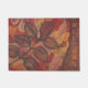 A welcome doormat with painted leaves in beautiful autumn colours of red, brown, yellow, orange, and cream.