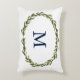 Green painted leaves with navy blue monogram. Customisable. Text colour and pillow colour can be changed