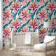 Big, bold petals in radiant shades of pink, magenta, and sunshine yellow bloom across the surface, bursting with energy and life. Expressive teal leaves sweep outward in painterly strokes, adding contrast and depth against a crisp white background. The design captures the fluidity and spontaneity of brushwork, creating a floral pattern that feels both modern and full of movement. Printed on durable, high-quality vinyl wallpaper, this pattern is not only eye-catching but also practical—easy to clean, fade-resistant, and designed to transform any space with long-lasting vibrancy. Ideal for statement walls, creative interiors, or lively accent spaces, this wallpaper brings joy, freshness, and contemporary flair to both residential and commercial settings.