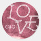 Modern chic simple typographic LOVE design and couple's monogram on marsala pink painted abstract background, great for modern wedding and anniversary parties.