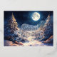 Painted Moonlit Snowy Winter Scene Season's Foil Holiday Card