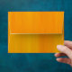 An envelope with a streaky orange painted texture effect on both the outside and inside. Nice in itself or can be further customised. Enter your name and address for the return address or clear this if you would prefer the envelope blank.
