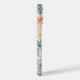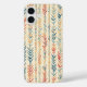 Repeating vertical rows of painted leaves/needles in red, blue, and gold on a cream background. Nature-inspired with a hand-painted look.