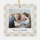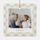A sweet double sided photo ornament displaying a favourite photo on each side, on a handpainted neutral light plaid background. Personalise with a custom caption on the front in handwritten lettering, and add the year to the back.
