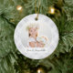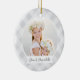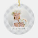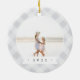 A sweet double sided photo ornament displaying a favourite photo on each side, on a handpainted neutral light plaid background. Personalise with a custom caption on the front in handwritten lettering, and add the year to the back.