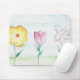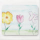 Mouse pad with painted primitive bright and cheery flowers against a blue sky in acrylic. Cute and simple wash outlined in black with a pointer brush.