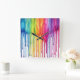 Painted Rainbow Watercolour Paint Drips Abstract Square Wall Clock