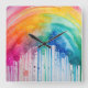 Painted Rainbow Watercolour Paint Drips Abstract Square Wall Clock