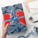 PAINTED HEART WITH BLUE JAPANESE WAVE PATTERN