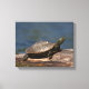 Painted turtle on a log canvas print