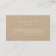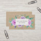 Rustic elegant business cards feature a bouquet of watercolor painted wildflowers printed on genuine brown kraft paper. Your name and title or profession are displayed in the centre in modern lettering on a white rectangular element. Add your full contact details, including social media links or handles, to the reverse side. A chic choice for makeup artists, stylists and more.