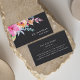 Dramatically elegant business cards feature a bouquet of watercolor painted wildflowers printed on rich black paper. Your name and title or profession are displayed in modern white lettering. Add your full contact details, including social media links or handles, to the reverse side. A chic choice for bloggers, makeup artists, stylists and more.