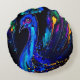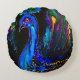 Bright blue body with colourful feathers against black creates a single funky bird.