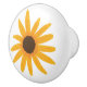 Painting of a single yellow sunflower flower, by CherylsArt, is printed on custom ceramic knobs. The background colour of white can be customised.