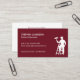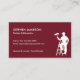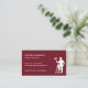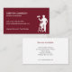 A business card for the painting and decorating industry. With a burgundy red background on the front and a silhouette of a painter on steps holding a paint roller, easily customize the white typography with your name and contact details. The reverse of the card has a plain white background and you can list out the services that you offer.