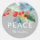 Stylish holiday stickers, featuring watercolor berries and leaves over a custom colour background (shown in grey). Great for envelope seals or gift tags!
