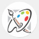 Painting is a lovely art form and this design is perfect for the painter. This design is a painters palette with four colours on it and a painters brush. It is a very arty design. This painters palette design looks great on these stickers. Perfect for yourself or as a gift